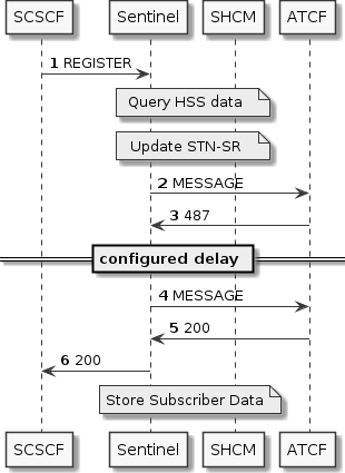If any of these steps fail (for example, the ATCF update times out, or the HSS returns a failed Answer) the ESRVCC registration feature responds to the registrar core with a SIP error. |