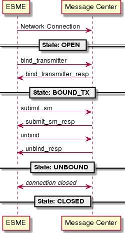 Note that for brevity each type of bind request has not been shown, instead BIND_xxx is used to denote BIND_TRANSMITTER, BIND_RECEIVER and BIND_TRANSCEIVER.